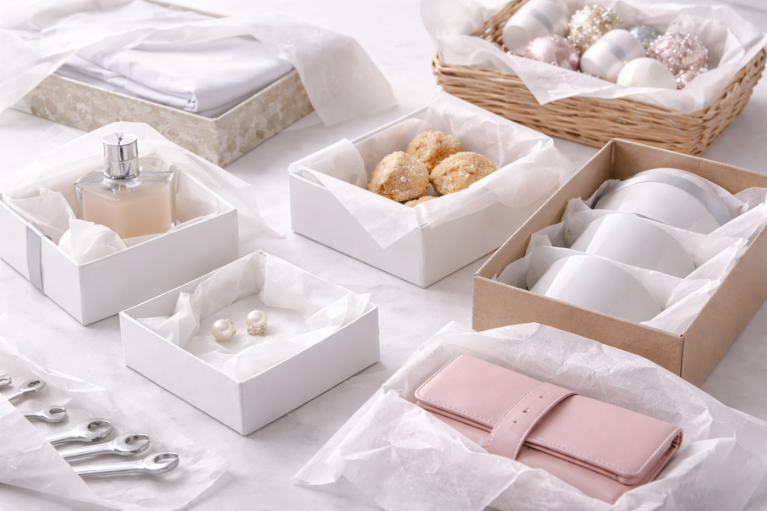 In der Kosmetik- und Parfümbranche wird Juwelierseide verwendet, um Flakons, Tiegel oder empfindliche Verpackungen zusätzlich zu schützen. Glasflaschen mit hochglänzenden Oberflächen oder beschichtete Kartonagen profitieren von einer weichen Zwischenlage, die Reibung und Abrieb reduziert.